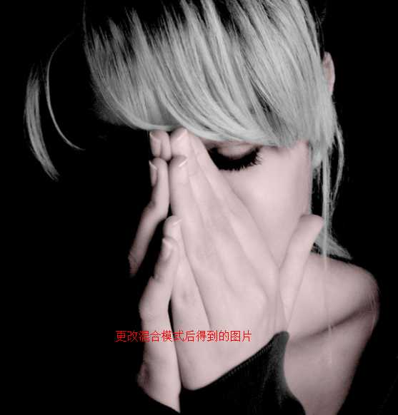步骤二:用钢笔工具扣出图片中皮肤的部分,建立选区,新建图层,填充颜色#FFEBEB,然后更改图层混合模式为颜色;
