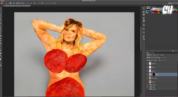 PS将美女制作成可口披萨