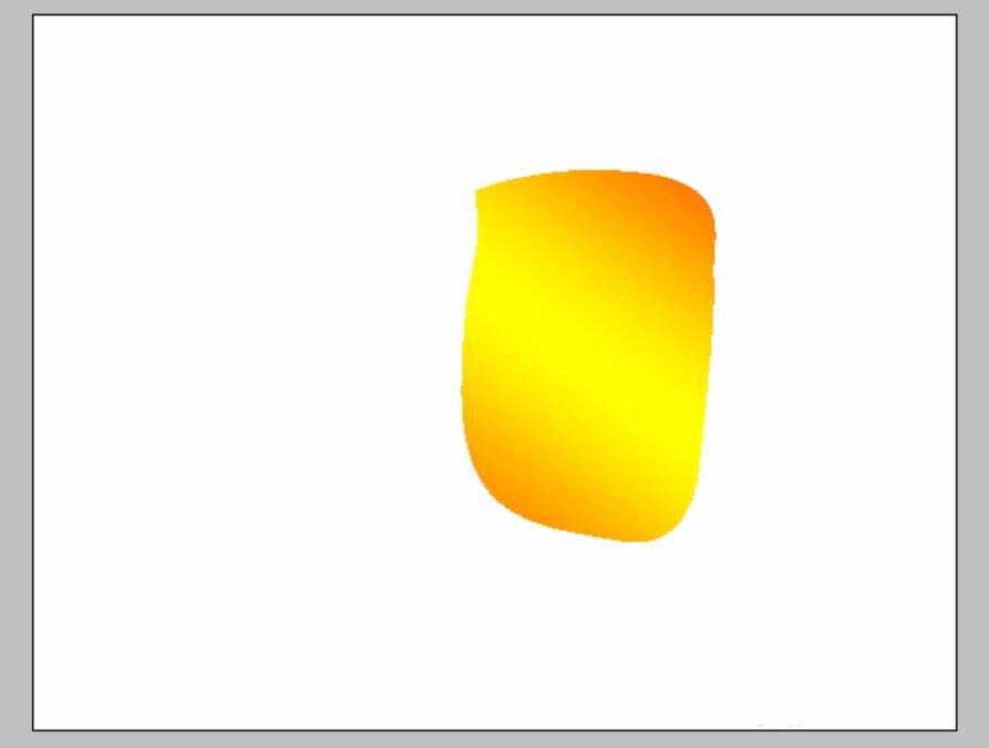 1、我们先从尖嘴鱼身上最大的一块区域鱼身开始绘制,这是一个不规则的图形,只有使用钢笔工具,采用六个描点来绘制完成。绘制完成之后转换成选区,用橙色渐变来填充。