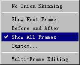 下面我们就来认识一下洋葱皮功能,开启“Frames”面板,单击“洋葱皮功能”按钮(如图9),弹出菜单中选项分别为: