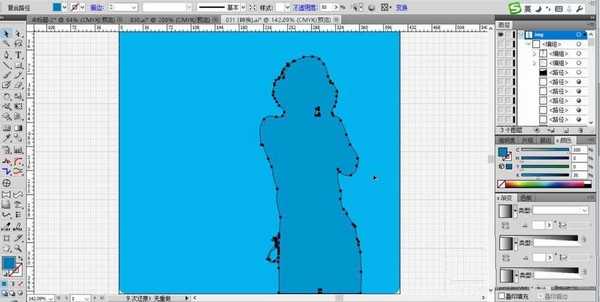 1、用淡蓝色作为背景,绘制女孩的身影轮廓并用蓝色填充。