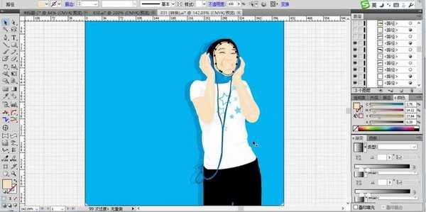 ai中想要画一个女孩穿着白色的衬衣与黑色的裤子,头戴着一个耳机,耳机上面有着长长的边线,两只手抱着自己的耳朵,认真听音乐的图片,该怎么设计呢?下面我们就来看看详细的教程。