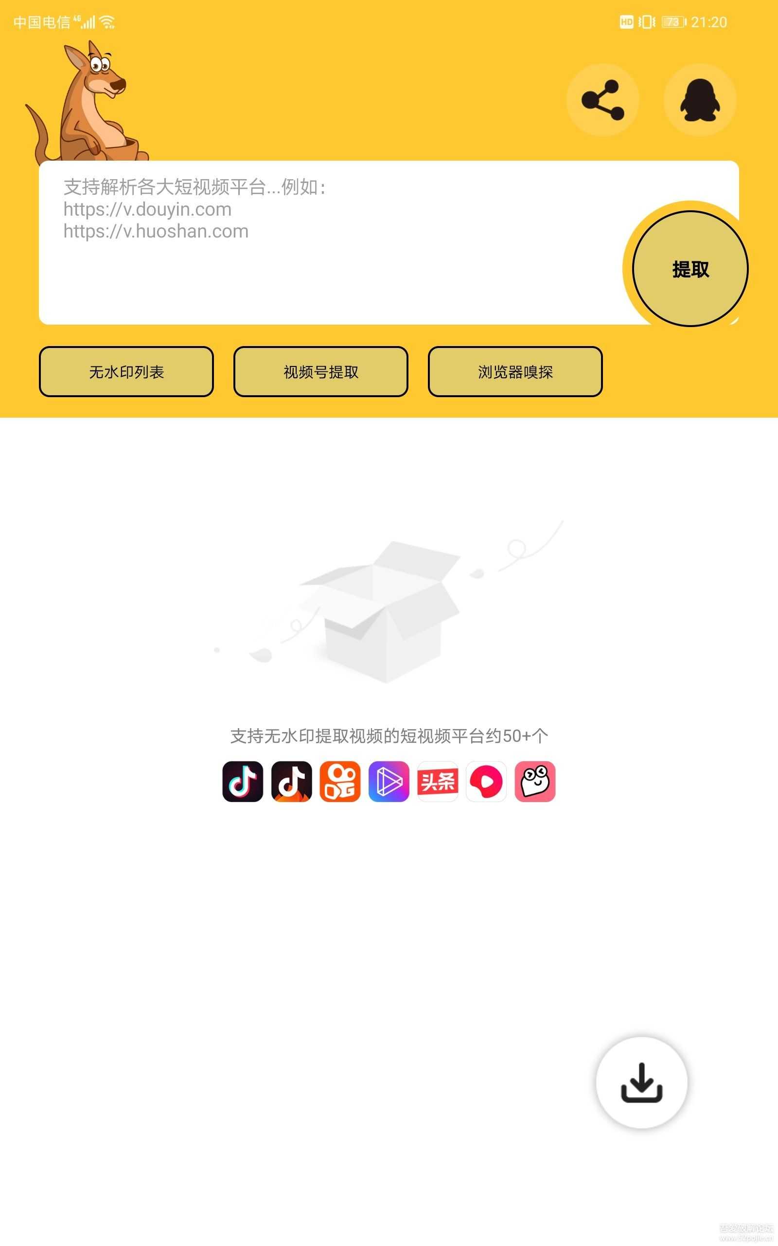 袋鼠下载支持目前主流50+短视频平台无水印下载,同时支持微信视频号提取和浏览器嗅探