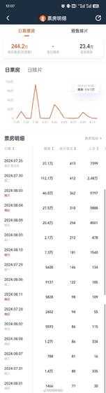 据灯塔专业版数据,截至8月12日,总台2024年巴黎奥运会影院直播总票房达244.2万。